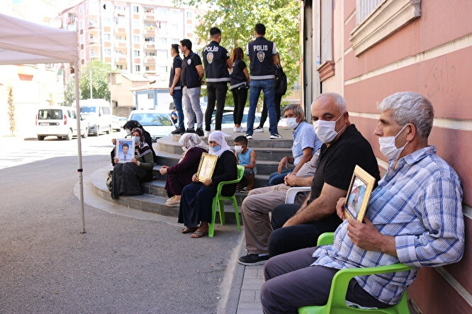 Diyarbakır’da, terör örgütü PKK tarafından kaçırıldığı iddia edilen çocuklarının bulunmasını isteyen ailelerin HDP il binası önündeki oturma eylemi, 355’inci günde de sürüyor.
