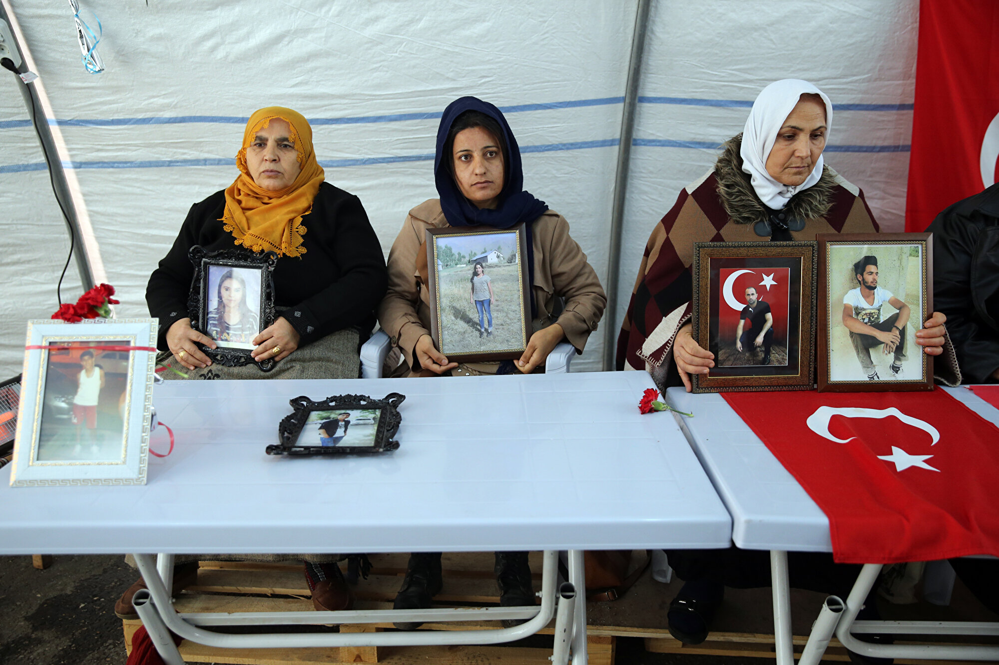 Diyarbakır'da, terör örgütü PKK tarafından kaçırılan çocuklarının bulunmasını isteyen aileler, HDP il binası önündeki oturma eylemini 93'üncü günde de sürdürdü. Aile sayısı, 2017 yılında 12 yaşındayken kaçırılan kızı Özlem için Hakkari'nin Şemdinli ilçesinden gelen 36 yaşındaki Vahide Çiftçi ile birlikte 58'e yükseldi.