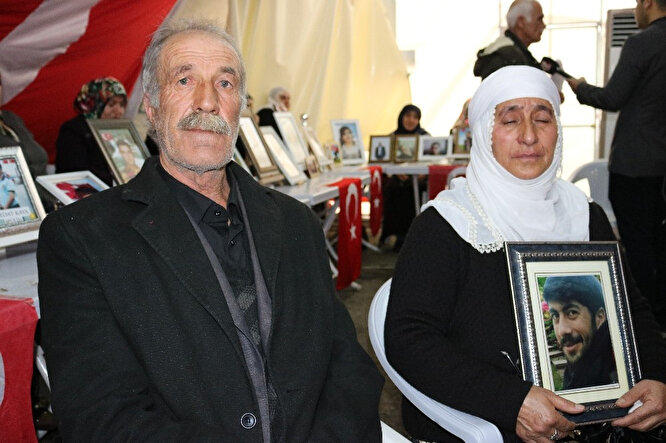 - Kürtçe konuşan Anne Gevez Erdinç ise oğlu Mikail’e, seslenerek gelmesi için çağrıda bulundu. Anne Erdinç,“Kurban olduğum gel. Seni merak ediyoruz, biz perişanız. Ailece kolumuz kanadımız kırık. Devlette bizim, bayrakta bizim, millette bizim, toprakta bizim. Kurban olduğum neredeysen pişman ol gel. Biz her gece gündüz ağlıyoruz. Yaşlıklarımız sabaha kadar hepsi su oluyor. Nerede olduğunu bilmiyoruz. Ne yaşlığın var, ne yorganın var”şeklinde konuştu.