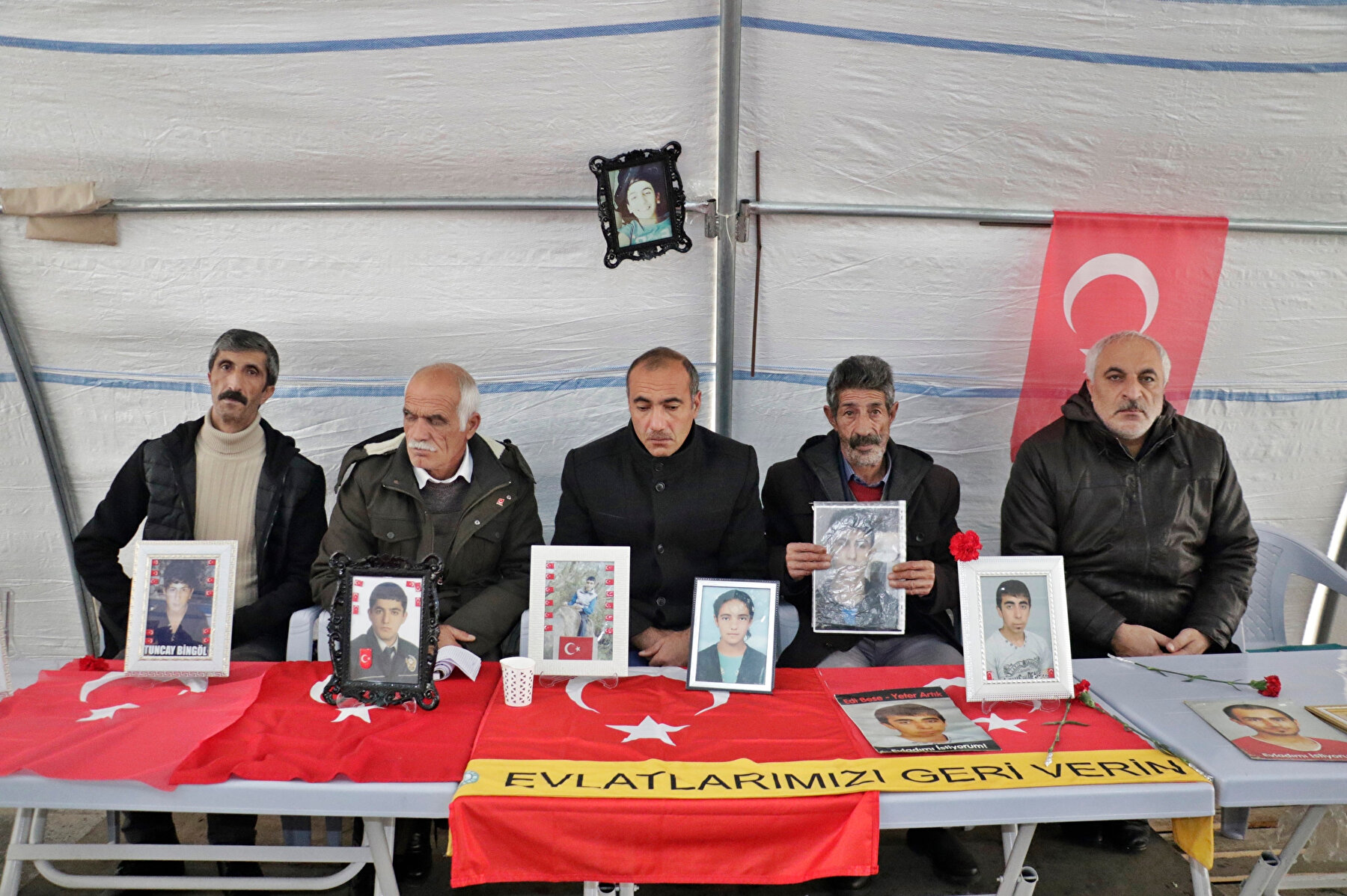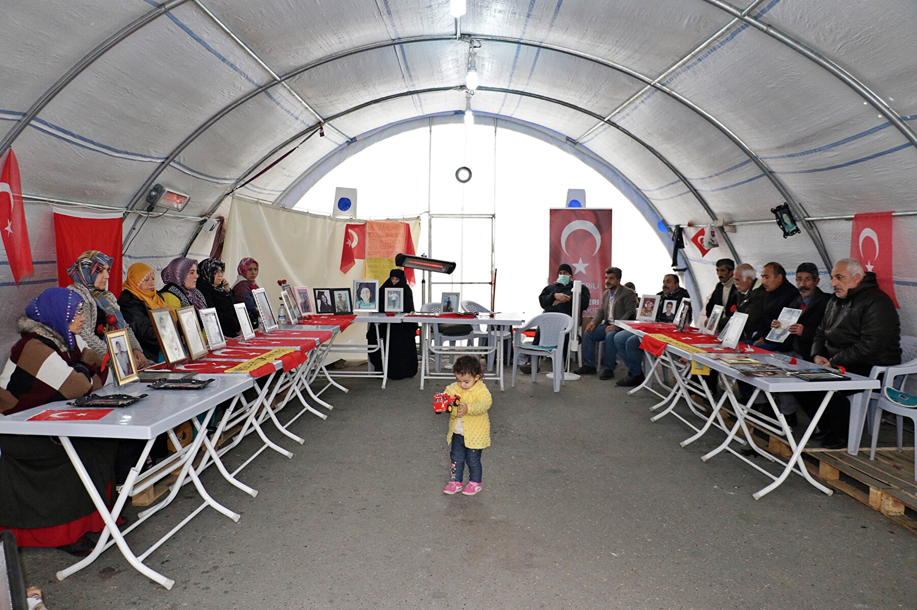 Diyarbakır'da, terör örgütü PKK tarafından kaçırılan çocuklarının bulunmasını isteyen 61 aile, HDP il binası önündeki oturma eylemini 111'inci günde de sürdürdü. Tunceli Pülümür'de, 2015'te, usta birliğine giderken, PKK'lı teröristlerce kaçırılan asker oğlu Adil (24) için oturma eylemini sürdüren Cennet Kabaklı, çocuğuna bir an önce kavuşmak istediğini söyledi.