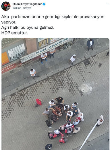 HDP'li vekil Dilan Dirayet Taşdemir ise il binası önünde çekilen bir fotoğrafı sosyal medya hesabından paylaşarak aileleri provokatörlükle suçladı. Taşdemir, paylaşımında "Akp partimizin önüne getirdiği kişiler ile provakasyon yapıyor. Ağrı halkı bu oyuna gelmez. HDP umuttur." ifadesini kullandı.