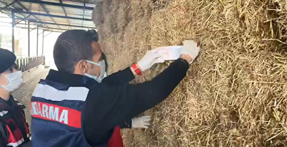 Yapılan aramada, saman balyaları arasında saklanan, 139 bin 155 lira para ile 8 çek ve 4 senet ele geçirildi.