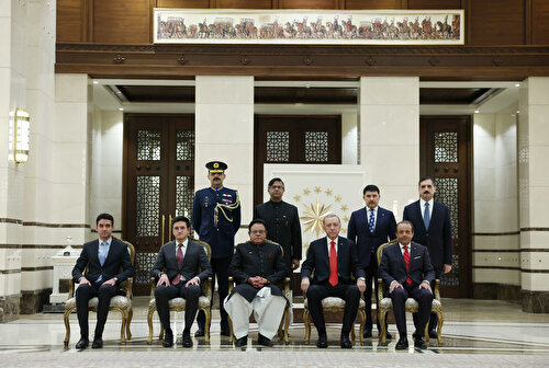Junaid'in oğulları ve bazı büyükelçilik mensuplarının Cumhurbaşkanı Erdoğan'a takdiminin ardından hatıra fotoğrafı çektirildi.