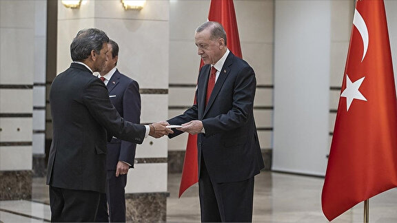 Cumhurbaşkanlığı Külliyesi'ndeki kabulde, Büyükelçi Junaid, Erdoğan'a güven mektubu sundu.