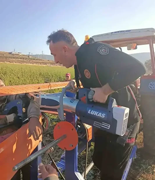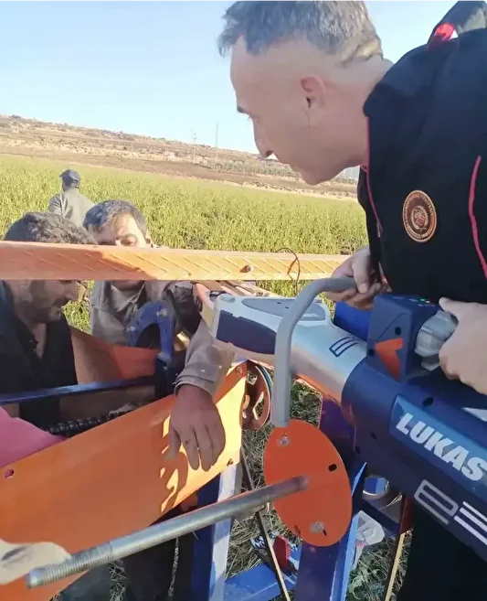 Kahramanmaraş’ta tarlada çalışırken kolu hortum sarma makinesine sıkışan bir kişi itfaiye ekipleri tarafından kurtarıldı.