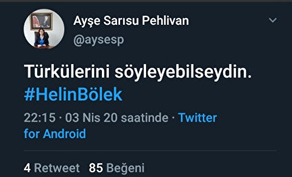 - Görevdeki bir hakim olmasına rağmen terör örgütü DHKP-C sanığına destek mesajları atan, Ayşe Sarısu Pehlivan'a sosyal medyadan tepki gösterildi. HSK Başkan Vekili Mehmet Yılmaz'ın Twitter hesabını mesajına etiketleyen Aziz Deniz isimli sosyal medya kullanıcısı şunları yazdı: Olmadı hâkime hanım. T.C yasaları sizlere emanet iken, siz DHKP-C üyesi bir şahsı nasıl översiniz? Savcı Selim Kiraz'ı kim öldürmüştü? Derhal Türk milletinden özür dileyin ya da istifa edin!"