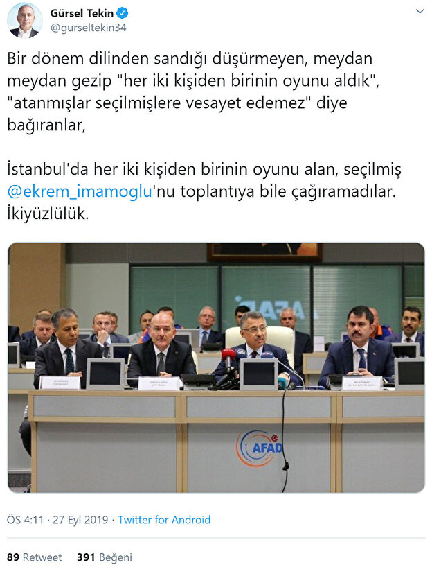 Bu karenin ardından, sosyal medyada ‘Ekrem İmamoğlu toplantıya davet edilmedi’ iddiası ortaya atıldı.