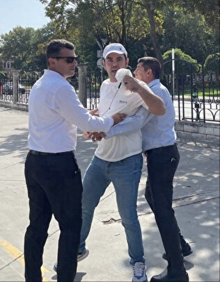 İstanbul Büyükşehir Belediye (İBB) Başkanı Ekrem İmamoğlu'nu Eminönü-Alibeyköy Tramvay Hattı'nın son etap açılışında eleştiren Seçkin Türk isimli bir vatandaş, korumalar tarafından darbedildi.