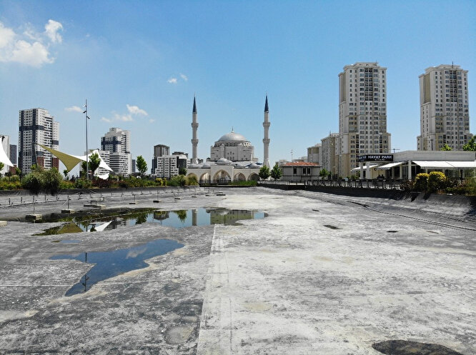 İstanbul Büyükşehir Belediyesi’nin yetkisinde bulunan millet bahçesinin, havadan çekilen görüntülerde ise göletinin boş ve atıl bir durumda olduğu görüldü.