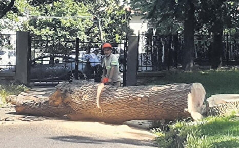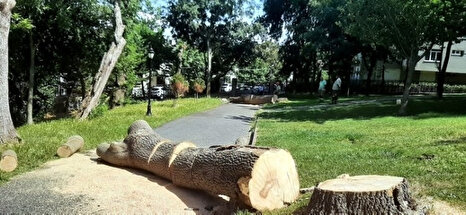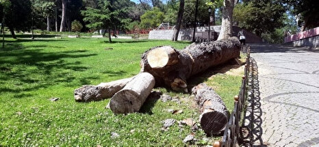 Park ve Bahçeler Müdürlüğü görevlileri ellerinde testere ile daha önceden belirledikleri ağaçları tek tek kesmeye başladı.
