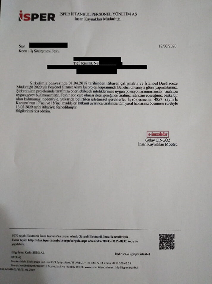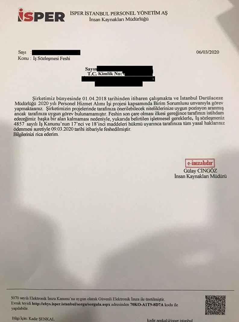 Son olarak 8 sağlık çalışanı, kendilerine gönderilen bir ihbar mektubu ile iş akitlerinin fesh edildiğini öğrendi.