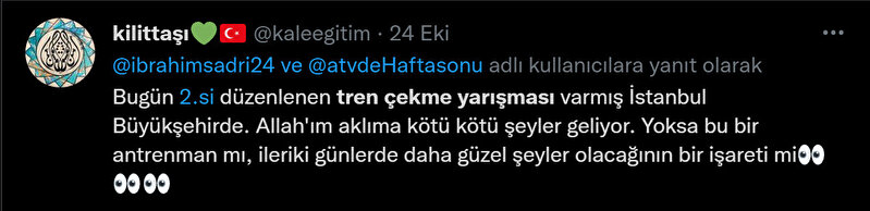 "Mahfetti güzelim İstanbul’u. Sahi tren çekme yarışması ne zamandı. Tüh biz itmeye antrenman yapmıştık."
