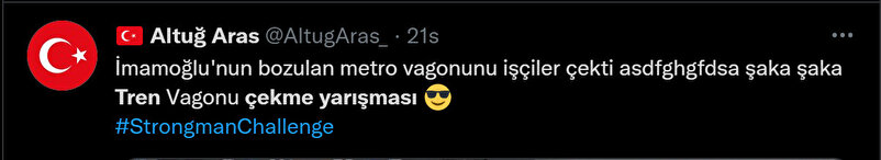 İstanbul Büyükşehir Belediyesi (İBB) dün "Metro İstanbul Strongman Challenge Tren Çekme Yarışması" düzenledi. Tren çekme yarışması, sosyal medyada gündem oldu. Her gün arıza haberleriyle gündeme gelen ve vatandaşlar tarafından ittirilen İETT otobüslerini hatırlatan kullanıcılar, yarışma hakkında esprili paylaşımlarda bulundu.