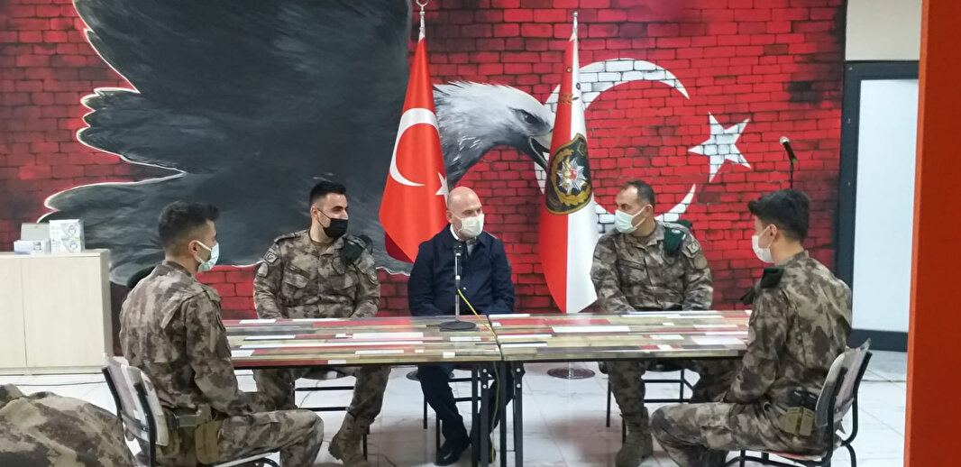 İçişleri Bakanı Süleyman Soylu, beraberinde Bakan Yardımcısı Mehmet Ersoy ve Jandarma Genel Komutanı Orgeneral Arif Çetin ile Hakkari'nin Yüksekova ilçesine gelerek Polis Özel Harekat Merkezini ziyaret etti.