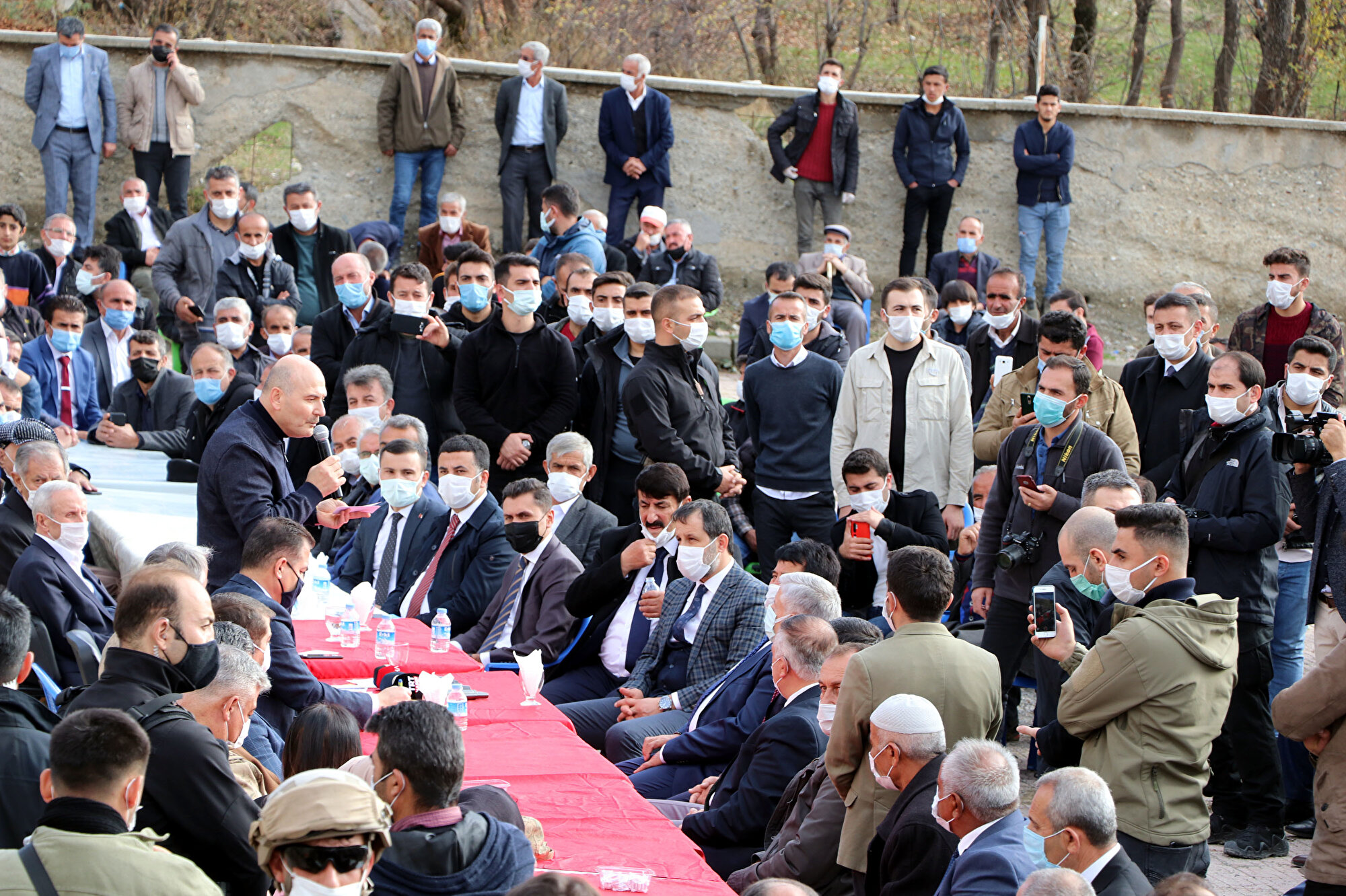 Bakan Soylu, "Allah'a hamdolsun. Hep birlikte hayırlı, güzel hem Cenab-ı Allah'ın emrine hem Peygamber efendimizin tavsiyelerine hem de büyüklerimizin nasihatlerini yerine getirmek için buradayız. Bu meseleye buranın büyükleri, sözü geçenleri, kanaat önderleri el attılar. Geçen yıl yılbaşında Geçitli köyü karakolundaydık. Beraber bir masanın etrafındaydık. Bu mesele konuşulunca, bu meseleyi bitirelim dedik. Bizim ki bir dilek ve niyazdı. Ama o dileği yerine getirenlere, kan davasını geride bırakanlara selam olsun. Allah sizden razı olsun. Barışmak, el ele tutuşmak, birbiriyle kucaklaşmak çok daha büyüklüktür. Ben bu ülkenin İçişleri Bakanı olarak Sayın Cumhurbaşkanımız Recep Tayyip Erdoğan'la dün gece yarısında bu meseleyi konuştum. İnanın çok mutlu oldu. Onun da sizlere selamları, sevgileri ve muhabbetleri var. Bu ülkenin İçişleri Bakanı olarak sizlere minnettarım. Hepinize teşekkür ediyorum. Cenab-ı Allah, Kur'an-ı Kerim'de müminler, inananlar ancak kardeştir diyor. Öyleyse bize bir emirde bulunuyor; 'Kardeşlerimizin arasını düzeltin' diyor. Bugün burada onun emrini yerine getiriyoruz. 2-3 gün önce hava çok soğuk olmasına rağmen, bugün bu kardeşliğin üzerine güzel güneş doğdu. Bu da Cenab-ı Allah'ın rahmetidir. Hakkari, Yüksekova, Şemdinli hakikaten devletimizin ortaya koyduğu yatırımlarla milletimize büyük mutluluk yaşatıyor" dedi.