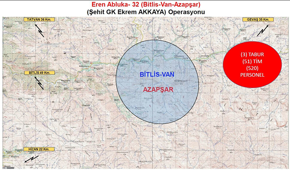 PKK Terör örgütünü ülke gündeminden çıkarmak ve bölgede barındığı değerlendirilen teröristleri etkisiz hale getirmek maksadıyla, Bitlis İlinde “Eren Abluka-32 (Bitlis-Van-Azapşarı) Şehit GK Ekrem AKKAYA" Operasyonu başlatıldı.