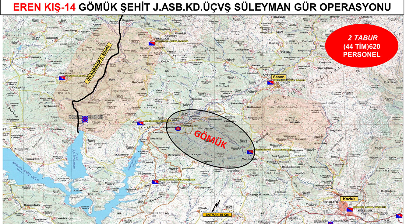 Açıklamada, PKK terör örgütünü ülke gündeminden çıkarmak ve bölgede barındığı değerlendirilen teröristleri etkisiz hale getirmek amacıyla, Batman'da, "Eren Kış-14 (Gömük) Şehit Jandarma Astsubay Kıdemli Üstçavuş Süleyman Gür" operasyonunun başlatıldığı kaydedildi.