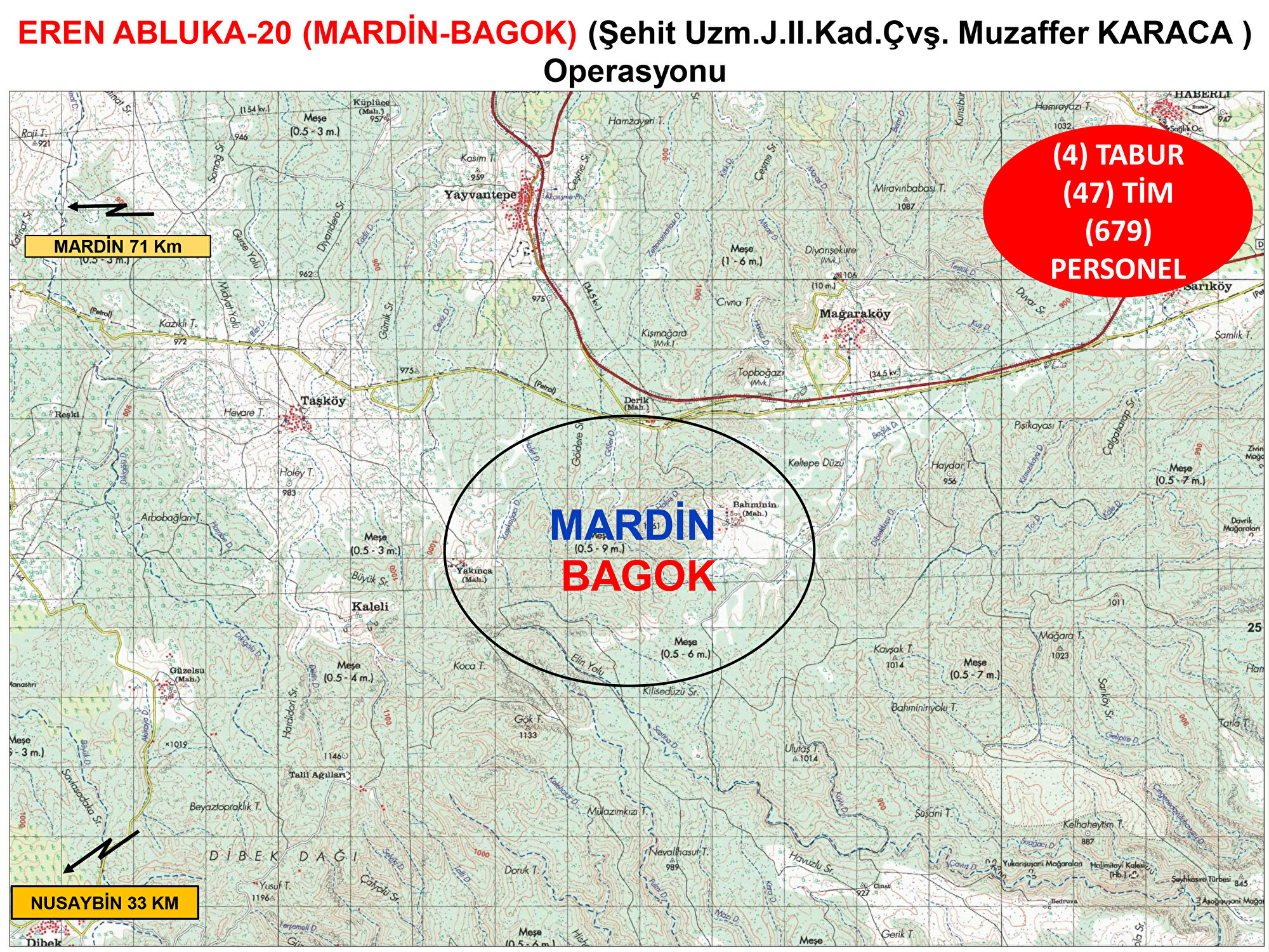 İçişleri Bakanlığı; Mardin’de 679 personelin katılımıyla Eren Abluka-20 Şehit Jandarma Uzman Çavuş Muzaffer Karaca Operasyonu'nun başlatıldığını duyurdu.
