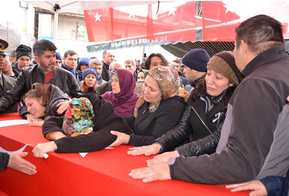 Anne Menşure Gürdal ve baba Hüseyin Pekel, yakınlarının desteğiyle ayakta durabildi. Menşure Gürdal, elindeki oğlunun fotoğrafı ve beresini öpüp tabutuna sarılarak gözyaşı döktü.