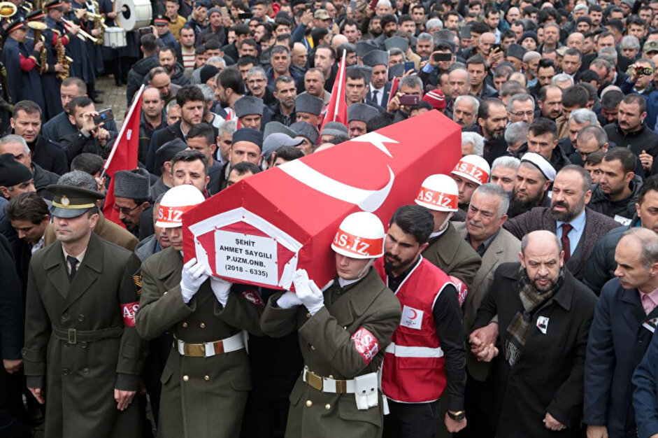 Bu arada, İdlib'deki hain saldırıda şehit olan Piyade Uzman Çavuş Halil İbrahim Akkaya, Piyade Uzman Onbaşı Güven Kurtulmuş ve sözleşmeli er Cuma Bağatur'un cenazeleri dün düzenlenen törenlerle toprağa verilmişti.