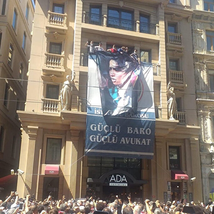 Çoklu baroya karşı çıkanlar DHKP-C'li avukatın posterini İstanbul Barosu'na asmıştı