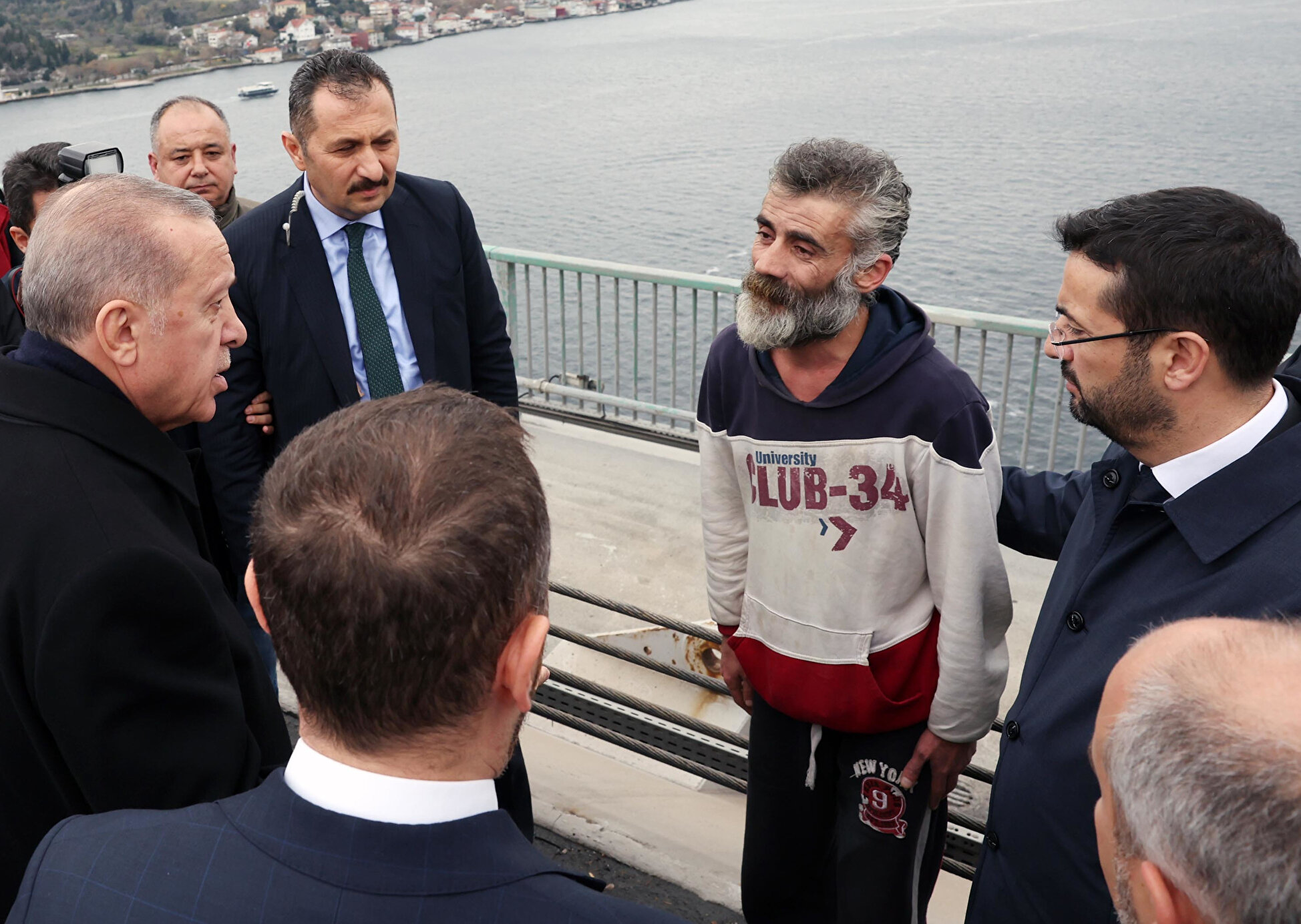 Cumhurbaşkanı Erdoğan, Dolmabahçe Çalışma Ofisi'nden İstanbul Tersane Komutanlığındaki programına geçerken, 15 Temmuz Şehitler Köprüsü'nde intihara teşebbüs eden bir vatandaşı görünce makam aracını durdurarak vatandaşın yanına gitti.