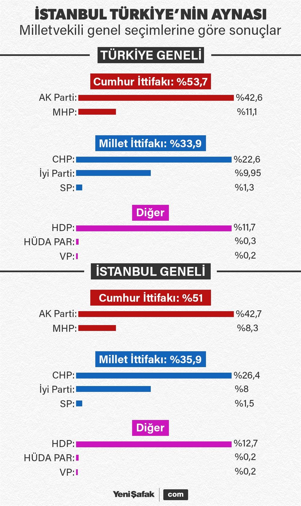 24 Haziran seçimlerinin ardından en dikkat çeken sonuçlardan biri de İstanbul’dan çıkmıştı. İstanbul sonuçları Türkiye’nin yansımasını oluştururdu. Hem Cumhurbaşkanlığında hem de milletvekili genel seçimlerinde Türkiye geneli sonuçları ile İstanbul geneli adeta benzer sonuçlar vererek dikkat çekti. Bu sonuçların ardından yıllara göre İstanbul’da çıkan sonuçlar karşılaştırıldığında 9 ay sonra yapılacak olan yerel seçimler için de bir işaret niteliği taşımakta.