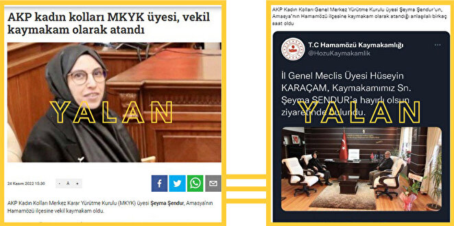 Bazı basın yayın organlarında "Partili kaymakam" başlığıyla yer alan, Amasya Hamamözü Kaymakam Vekili Şeyma Şendur'un AK Parti üyesi olmasına rağmen bu göreve getirildiğine dair iddiaların gerçeği yansıtmadığı aktarılan bültende, şu ifadelere yer verildi: