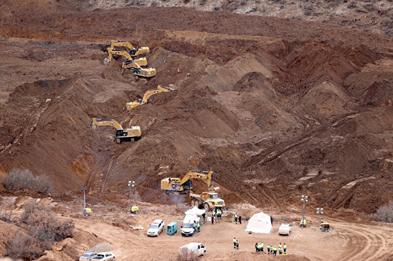 “Bu maden sahasındaki kazanın üzerinden 6 gün geçti. İlk anından itibaren. Devlet olarak, hükümet olarak tam bir seferberlik ruhuyla gece gündüz durmadan, duraksamadan çalışıyoruz. Değerli kardeşlerim burası bu maden ocağı 940 hektarlık bir arazi. Bugün sizlerle beraber çalışmaların olduğu yerden aziz milletimize konuşuyoruz. Bu hemen ardımızda görmüş olduğumuz toplam liç alanı dediğimiz yerde yaklaşık 35 milyon metreküplük bir toprak kütlesi var ve 14.28'de, o vakitte toprağın kaydığı zamanda hemen bu ardınızdaki Sabırlı Dere alanı dediğimiz yere yaklaşık 5 milyon metreküplük bir toprak kaymasıyla yeni bir kütle bu tarafa doğru, vadiye doğru geliyor. Hemen arkasındaki mangan ocağı dediğimiz yer var ki oradan geliyoruz buraya bakanımızla. Orada da 1.2 milyon metreküplük bir toprak kaymasıyla yer değiştirmiş vaziyette ve hemen sırt tarafta yani toplam liç alanının olduğu yerde de devamlı karşı tepelerde iki tane konuşlandırılan jeoradarla da yaptığımız, duraksamadan yaptığımız arama kurtarmayla ilgili çalışmalarımızda çalışan arkadaşlarımızın güven ortamında çalışmasıyla ilgili bundan sonra olma ihtimali olan bir kaymayı anlık izliyoruz. Bunun da altını çizmek istiyoruz. Değerli arkadaşlar, arama kurtarmayla ilgili AFAD başından beri 500'ün üzerinde şu anda arama kurtarma profesyonel ekibimiz var. 2 bin 700'ü aşmış vaziyetteyiz, insan gücü olarak. 800 aracımız var. En modern, en güçlü araçlarımız var. Şunun altını çizmek istiyorum; araç ve insan kaynağı olarak hiçbir eksikliğimiz yok ama anbean arkadaşlarımız, buradaki bilim insanlarımızın yol göstericiliğinde, istişareyle, işçimizden, şoförümüze varıncaya kadar hepimizin tek bir niyeti var. Bu işi olabilecek en kısa zamanda tamamlamak. Bunun için de eğer ilave araç, ilave insan kaynağıyla ilgili bir ihtiyacımız doğuyorsa bilin ki olabilecek en kısa sürede bunu biz tamamlıyoruz. Şimdi öncelikle 9 canımız şu anda bu toprağın altında. Yakınlarımızın her birini ziyaret ettik. Devamlı da ediyoruz. Onlar da buraya zaman zaman geliyorlar. Onların akrabalarından bu maden ocağında çalışan kardeşlerimiz de var. Az önce onlarla tekraren görüştük. Onların sabrı, anlayışı için minnettarız. Bunu ifade etmek istiyorum. Tekrar ve tekraren geçmiş olsun dileklerimi paylaşmak istiyorum. Ve değerli kardeşlerim, sabra ihtiyacımız var. Altını çizerek ifade etmek istiyorum. Sabır bizim şu anda en fazla ihtiyacımız olduğu bir duygu. Bunu da görüyoruz. Minnettarız ama şunu ifade etmek istiyorum. Böyle büyük bir toprak kütlesinin hareket ettiği bir ortamda bizim planımız basitçe şu; Çevre Şehircilik ve İklim Değişikliği Bakanlığımızdan arkadaşlarımız ve bilim insanlarımızla beraber hemen bu ardımızdaki görmüş olduğumuz 5 milyon metreküplük alanda, hedef alanda ve arkasındaki mangan alanında toprağı geçici depolama alanı olarak az önce gelmiş olduğumuz ve tamamen Çevre Şehircilik'in bizzat talimatıyla ve yerinde yaparak oluşturmuş olduğu güvenli ortama geçici tahliye ediyoruz. 800 iş makinesi dedik ya şuan için çalıştırdığımız ekskavatör ki en büyük hacimli ekskavatörlerle biz 60'a yakın ekskavatörle günlük 1000-1500'e yakın bir kamyon hareketiyle burayı ve hemen mangan ocağının içinde bulunduğu toprak kaymasının olduğu yere bu tahliye sürecini AFAD koordinasyonunda yapmaya devam ediyoruz. Durmuyoruz. İklim şartları ve özellikle jeoradarların devamlı takibiyle güvenli bir ilgili sıkıntı olmadığı müddetçe Allah'ın izniyle aziz milletimize, bu kardeşlerimize eriştiğimizin müjdesini verebilmek için canı gönülden çalışıyoruz. Her anında Cumhurbaşkanımız takip ediyor buradaki süreci ve ben bakanımıza huzurlarınızda teşekkür ediyorum. Sadece Enerji Ve Tabii Kaynaklar Bakanlığı olarak değil ama bu mega işletmenin olduğu yerde içişleri ailesi, Çevre Şehircilik İklim Değişikliği, Çalışma ve Sosyal Güvenlik Bakanlığımız, Tarım ve Orman Bakanlığımız yani hükümetimizin burayla ilgili aksiyon alması gereken değerli kardeşlerim tüm bakanlıklarımızla ilgili olması gerekenlerin hepsi anbean, büyük bir koordinasyon, azim ve kararlılıkla devam ediyor. Burada Erzincan'da başsavcımızın nezaretinde görevlendirilen 4 savcımız bununla ilgili bir ihmal, bir kusur varsa bilin ki kesinlikle ve kesinlikle hak, adalet, tecelli edecek. Buna hiç kimsenin kuşkusu ve şüphesi olmasın. Bu sürecin yargıya intikal ettiği andan itibaren değerlendirmeler yapmak bizim hakkımız değil. Bağımsız yargı. Zaman zaman kamuoyunu bu noktada bilgilendirmeyle ilgili bir ihtiyaç soruyorsa gerek Yılmaz Bakanımız gerekse başsavcılığımız bununla ilgili sizleri de bizleri de aydınlatır ve bu süreçte benim bildiğim kadarıyla devam edecek. Şu ana kadar yapılması gerekenlerin üzerine ilave yapılması gereken mevcut ifadelerden veya ortaya çıkan yeni delillerle ne söylenmesi, ne hareket edilmesi, nasıl karar alınması gerekiyorsa hep beraber bunu izleyeceğiz ve sizlerle beraber ben de öğreneceğim hiç merak etmeyin” dedi.