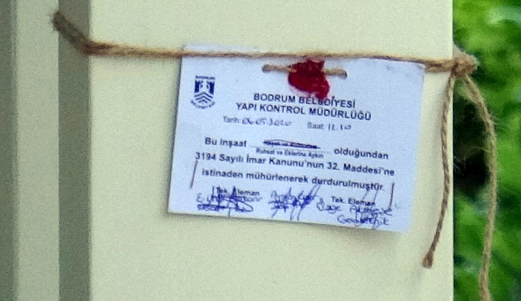 Sözcü Gazetesi yazarı Yılmaz Özdil’in eşi Hülya Özdil’in Muğla'nın Bodrum ilçesinde satın aldığı, imara aykırı yapılaşmayla 142 metrekareden 310 metrekareye çıkarılan villa mühürlendi. Kaçak bölümlerin yıkılması için 13 Mayıs'a süre verilen villanın kapısına asılan mühürde, "Bu inşaat ruhsat ve eklerine aykırı olduğundan 3194 sayılı İmar Kanunu'nun 32'nci maddesine istinaden mühürlenerek durdurulmuştur" denildi.
