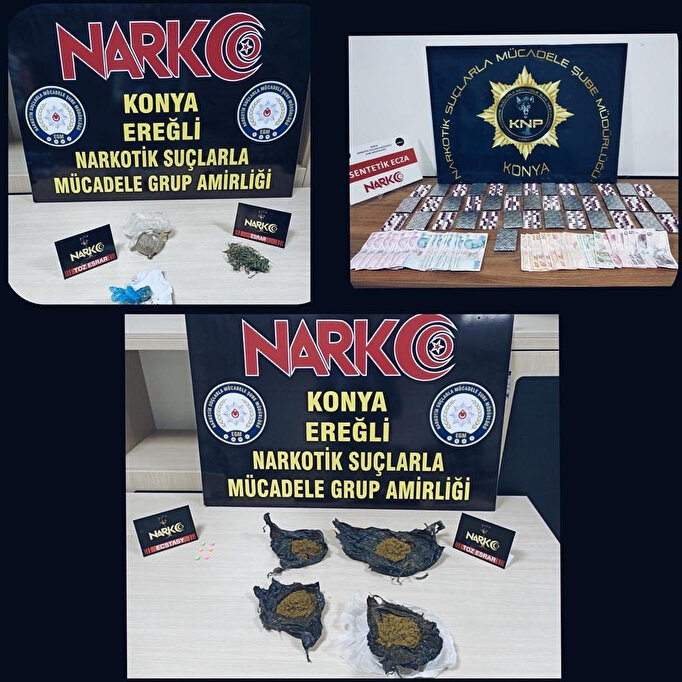 Operasyon 785 gram toz esrar, 582 adet uyuşturucu hap ecstasy, 14 adet peçeteye emdirilmiş bonzai, 4 kök Hint keneviri ile uyuşturucu satışından elde edilen 3 bin 950 TL ele geçirildi.