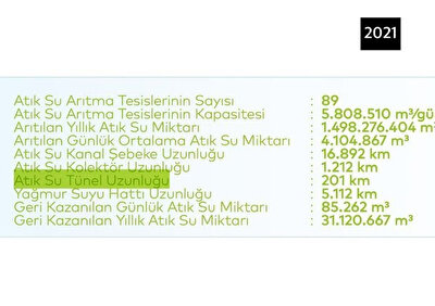 2021 yılı İSKİ Faaliyet Raporu'nda da Atık Su Tünel Uzunluğu AK Parti döneminde tamamlandığı kadar olduğu 201 kilometrenin haricinde yeni bir atık su tüneli inşa edilmediği gözler önüne serildi.