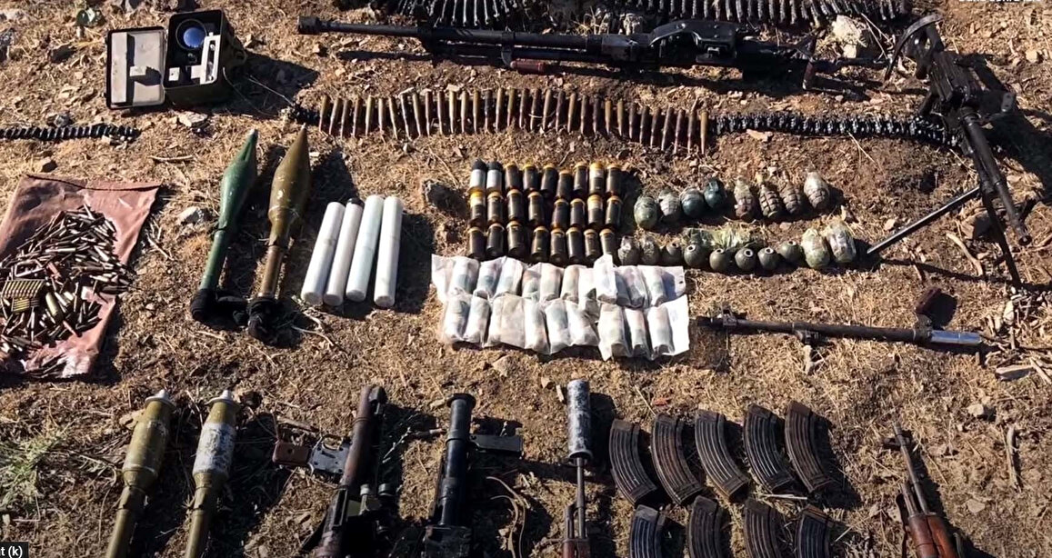 Kahraman komandolarımız tarafından bölgede icra edilen arama tarama faaliyetlerinde, 1 adet sehpa üzerine monteli Doçka silahı, 1 adet Bixi ve yedek namlusu, 1 adet RPG-7 roketatar ve dürbünü, 2 adet AK-47 piyade tüfeği, 1 adet 40 milimetre bombaatar, 4 adet anti-tank roketatar mühimmatı, 2 adet anti-personel roketatar mühimmatı, 25 adet bombaatar mühimmatı, 18 adet el bombası, 2600 adet 5.56 milimetrelik piyade tüfeği mühimmatı, 850 adet Bixi mühimmatı, 500 adet 12.7 milimetrelik Doçka mühimmatı, 1500 adet fünye, 1600 adet elektrikli fünye, 1 adet silah dürbünü, çok sayıda el yapımı patlayıcı düzeneği ve muhtelif boyutlarda pil, 2 adet elektrikli hilti, 1 adet termal kıyafet, 1 adet kamuflajlı kamp çadırı, muhtelif örgütsel dokümanlar ve yaşam malzemeleri ele geçirilerek, bulundukları sığınaklarla birlikte imha edildi.
