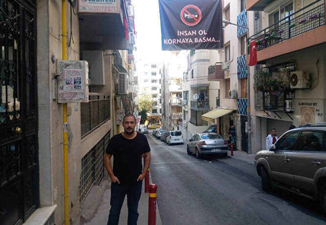 Sokak sakinleriyle beraber böyle bir pankart asmaya karar verdiklerini ve çok etkili olmayacağını düşündüklerini belirten mahalle sakini Artun Emirbayer (37), "Bu sokak; İnönü Caddesi’ni Mithatpaşa Caddesi’ne bağlayan tek yön. Burada akşamları ve sabahları fazla trafik oluyor. Sahile çıkışlardan trafik sıkışıklığından dolayı sokakta komple konvoy oluyordu. Şoförler devamlı korna basıyordu. Mahallemizde yaşlılar, çocuklar, bebekler olduğu için herkeste bir rahatsızlık var. Her gün bu sokakta kavga oluyordu. Sokak sakinleriyle beraber böyle bir pankart asmaya karar verdik. Belediyeden izin aldık. Bu farkındalığı oluşturmak istedik. Biz bunu yaparken etkili olacağını düşünmemiştik. Mahallemizde korna sesi neredeyse hiç yok; ama inadına basan şoförler oluyor. Onları da artık Allah’a havale ediyoruz. Sessizlikten, huzurdan mutluyuz şu an için" diye konuştu.