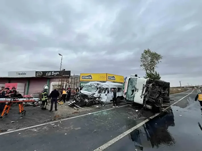Tekirdağ’ın Ergene ilçesinde işçi servisi ile kamyon kafa kafaya çarpıştı, ilk belirlemelere göre çok sayıda kişi yaralandı.