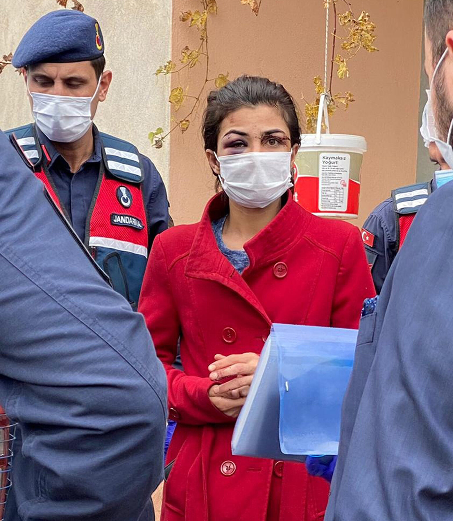 Bu sefer tüfeğin dipçiği ile kafama vurdu. Bundan dolayı gözüm, yüzüm, kolum ve omzumdan yaralandım. Beni saçından sürükleyerek diğer odaya getirdi burada yumruk ve tekme ile yüzüme ve vücuduma vurdu. Cebimdeki telefonu aldı kafama ve yüzüme telefonla vurdu. Çığlık attığım için susmamı söyledi ve boğazımı şiddetli bir şekilde sıktı. Bunun etkisiyle gözlerim yerinden çıkacak gibi oldu, karardı. 'Diğerlerine daha azını mı yaptığımı düşünüyorsun' diye bağırdı. Elinden kurtuldum, kaçmaya çalışırken yakaladı yumruk ve tekme atmaya başladı. Çığlık atmaya devam edince tekrar boğazımı sıktı bu esnada ben bayıldım."