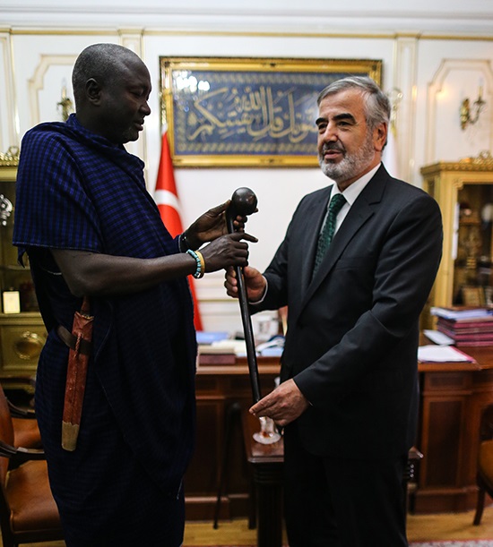 Sohbetin ardından Kiberenge, Müftü Yılmaz'a Tanzanya'da kabile şeflerine özel yapılan asayı hediye etti. Kiberenge, "Bu asayı size geleneklerimiz gereği törenle vermem gerekiyordu. Çünkü bu elinizdeki asa ile gençler sizi gördüğü zaman o hatalarını düzeltecekler." ifadesini kullandı.