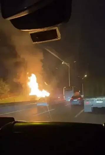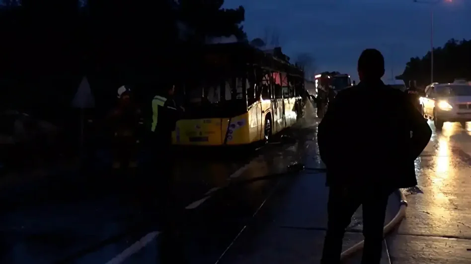 Öte yandan, yangın anı cep telefonu kamerasıyla kaydedildi. Görüntülerde, otobüsün arka kısmının alevli şekilde yandığı görülüyor.