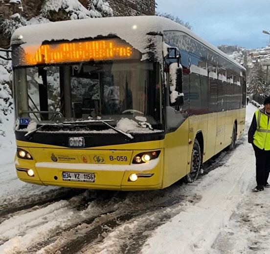 İstanbul’da gece saatlerinde etkisini gösteren kuvvetli kar yağışı hayatı olumsuz etkiledi. Fatih’te bulunan Ulubatlı otobüs durağında yolcu indiren İETT otobüsleri karla kaplı yolda ilerleyemedi. Yolcular yolun geri kalanını yaya olarak devam etti.