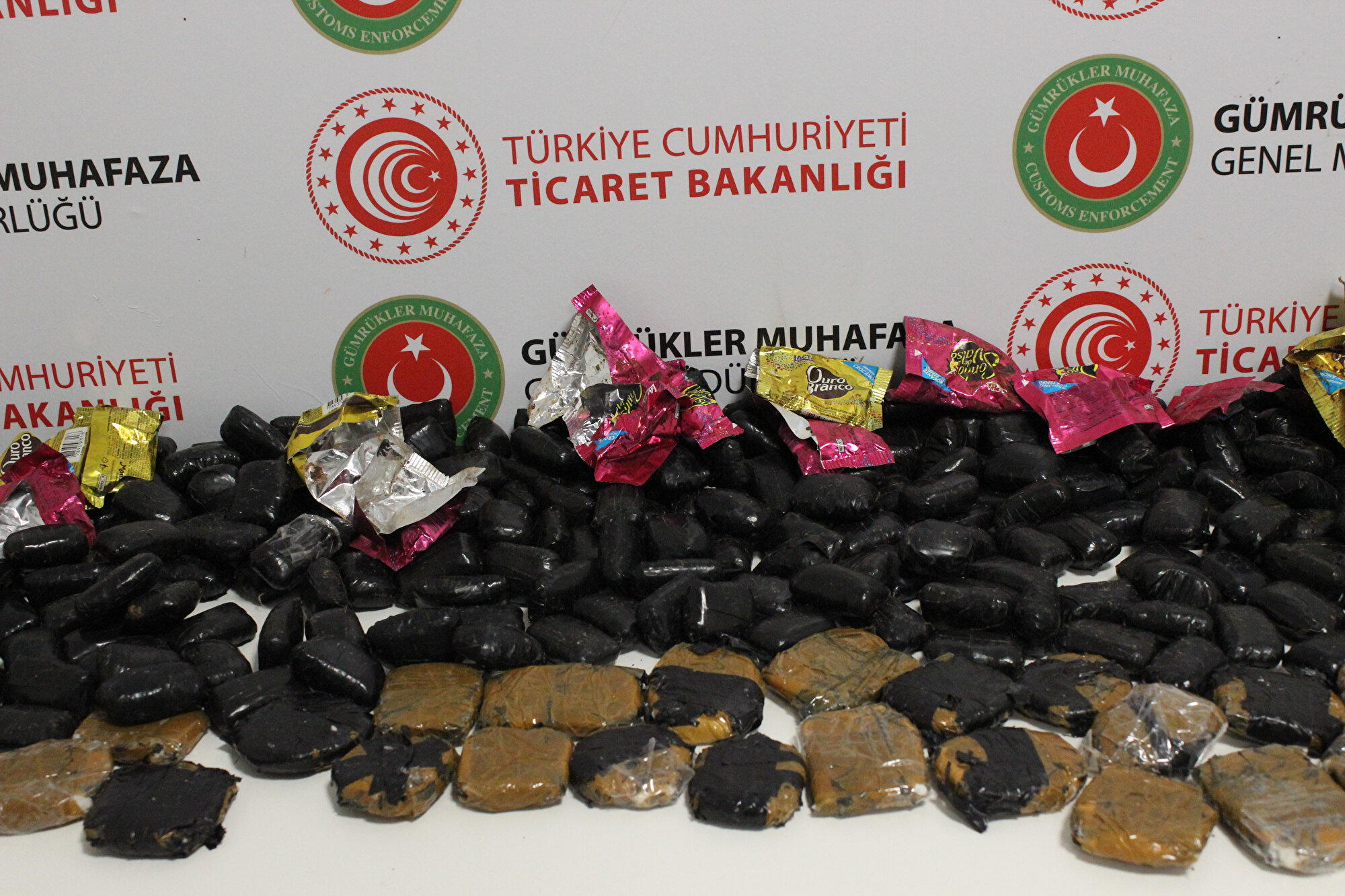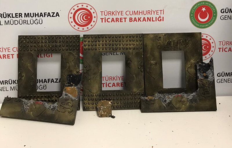 İncelemelerde paketlere sarılı çikolataların içine ve çerçevelerin kenarına siyah bantlarla sarılmış kokain bulundu.