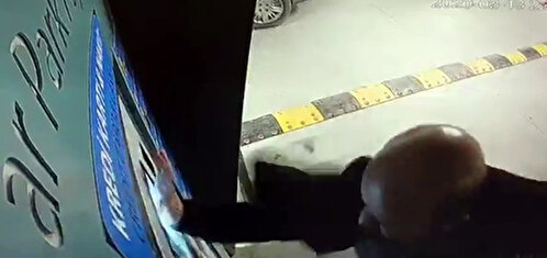 İstanbul Havalimanı’nda bulunan otoparkın otomatının yanına gelen bir kişi, otomatın içerisine para attıktan sonra otomatı önce yumruklamaya daha sonra ise tekmelemeye başladı.