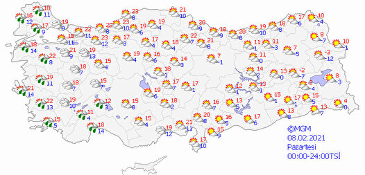 Hava sıcaklıklarının Marmara'nın kuzeyi ile Karadeniz kıyı kesimlerinde 3 ila 6 derece artacağı, diğer yerlerde önemli bir değişiklik olmayacağı, ülke genelinde mevsim normallerinin 6-10 derece üzerinde seyredeceği tahmin ediliyor.