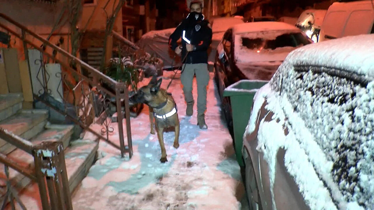 Polis ekiplerinin evde yaptığı aramada hassas burunlu narkotik köpeği "Bozo" da kullanıldı.