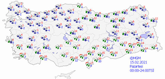 - Pazartesi gününden itibaren kuzey, iç ve doğu kesimlerde soğuk havanın etkisini artırması ile birlikte kar yağışlarının aralıklarla devam etmesi bekleniyor."