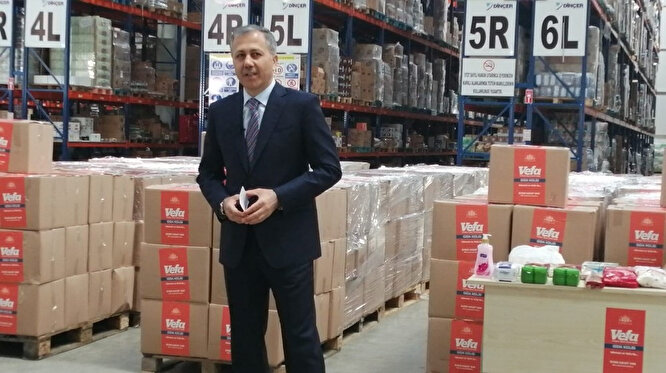 Yerlikaya, "22 Mart saat 13’ten bugün sabah saat 09.00’a kadar yaklaşık 73 bin çağrı aldık. Ve 65 binin biraz üzerinde çağrılarla gelen büyüklerimizin ricalarını yerine getirdik. Aradaki 7-8 bin çağrı da onların bilgi edinmeyle ilgili sordukları husustu onları kendileriyle paylaştık. Onlarla ilgili sokağa çıkma yasağı devam ettikçe bu hizmet devam edecek. Ama bugün burada bulunmamızın önemli sebebi de şu, biz her hafta onların evine bir yardım kolisi takdim edeceğiz. 50 bin adres her hafta olmak üzere bu haftadan itibaren birinci hafta, bu devam edecek. Bu sene farklı bir tarzla dağıtıyoruz. Her birinin navigasyon programlarına uygun enlem boylamlarını aldık. Getir firması, burada İl Tarım Müdürlüğü ve gıda mühendislerimizin gözetiminde gece gündüz esasına göre hazırlandı” ifadelerini kullandı.