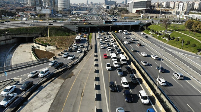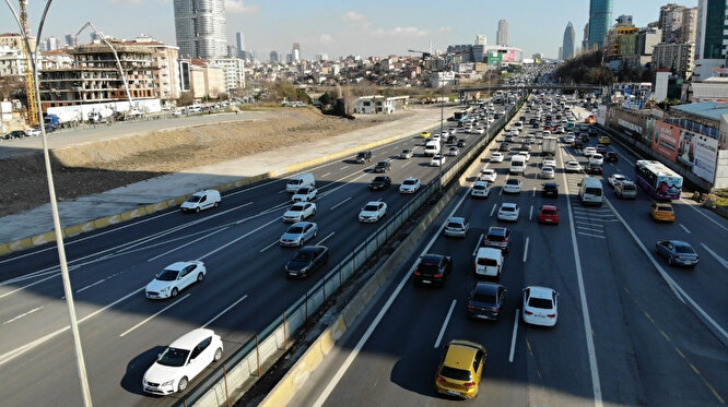 Türkiye genelinde akşam saat 21.00’dan itibaren uygulanacak olan 56 saatlik sokağa çıkma kısıtlama öncesi İstanbul’da trafik yoğunluğu erken saatlerde başlandı. D-100 karayolundaki trafik yoğunluğu havadan görüntülendi.