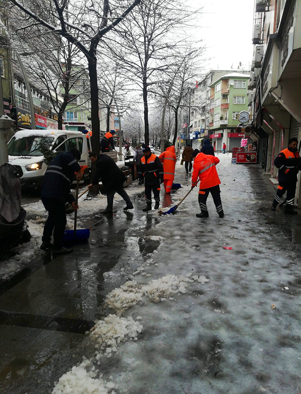Kaldırımdaki buzlar da küreklerle kazındı.