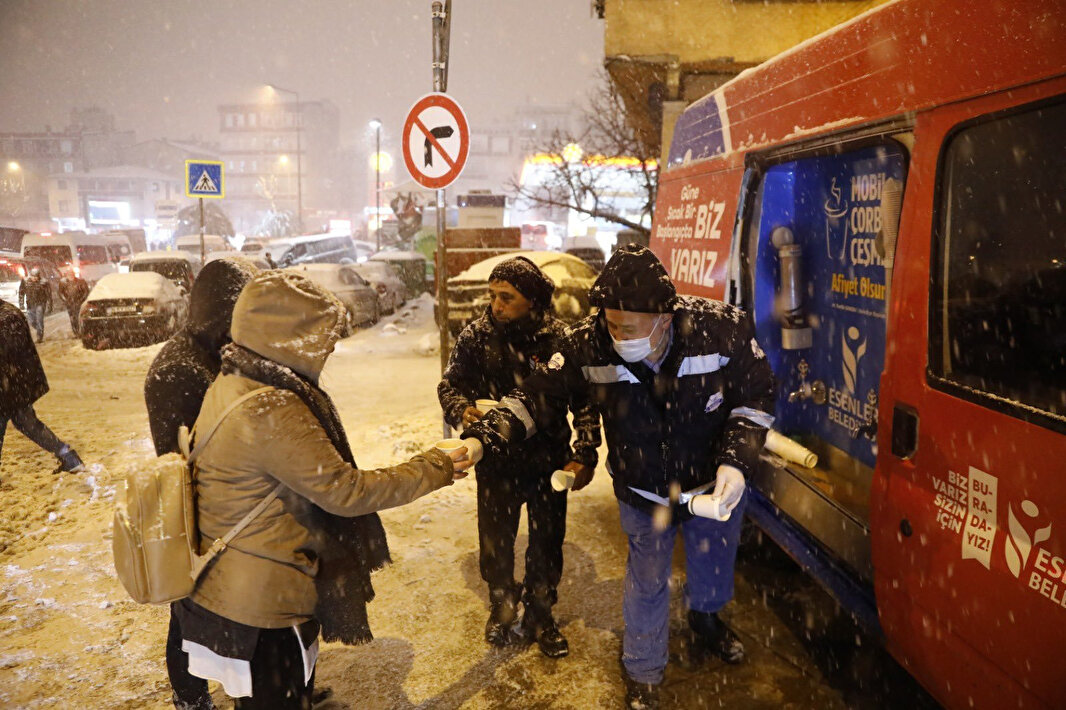 Yollarda mahsur kalanlar için gençlik merkezleri hazır hale getirildi. Esenler’den geçen tüm yolculara sıcak çorba ikramı yapıldı.