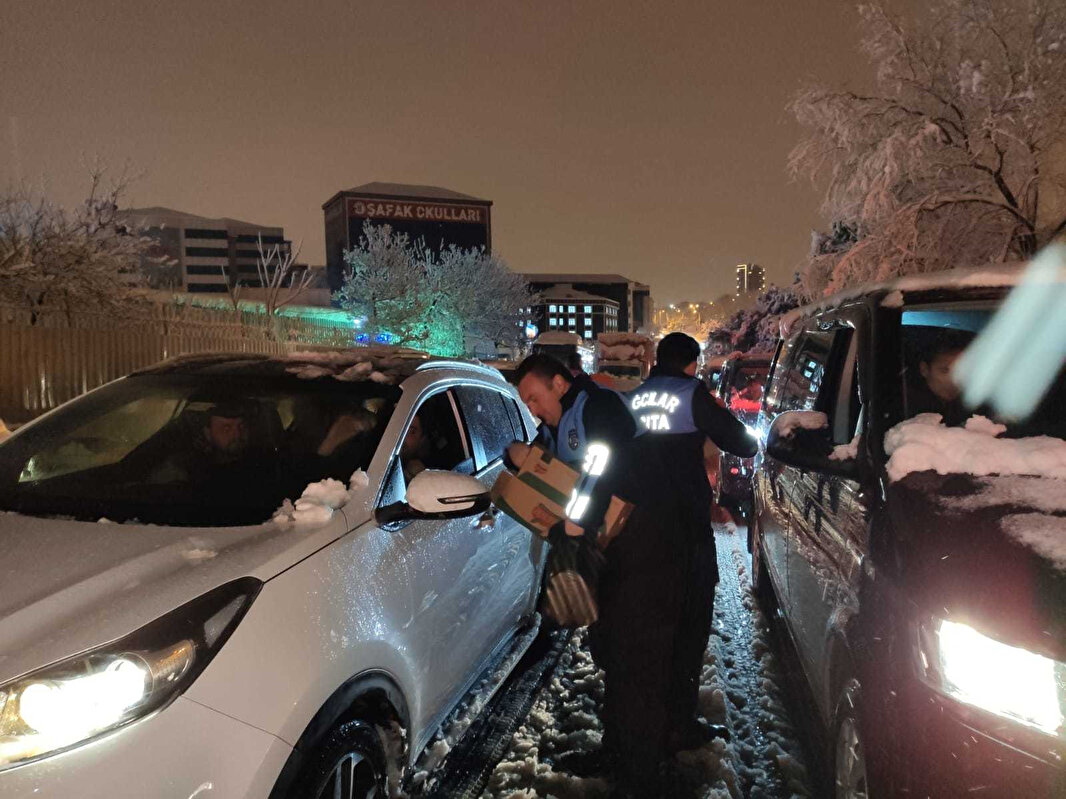 Yolda mahsur kalanlara aç kalmamaları için gece boyunca ikram yapıldı.