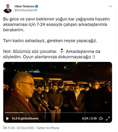 Üsküdar Belediye Başkanı Hilmi Türkmen, gece 3 saatlerinde 500 personel ve araçla sahada olduklarını duyurdu. Türkmen çalışmaları da bizzat takip etti.